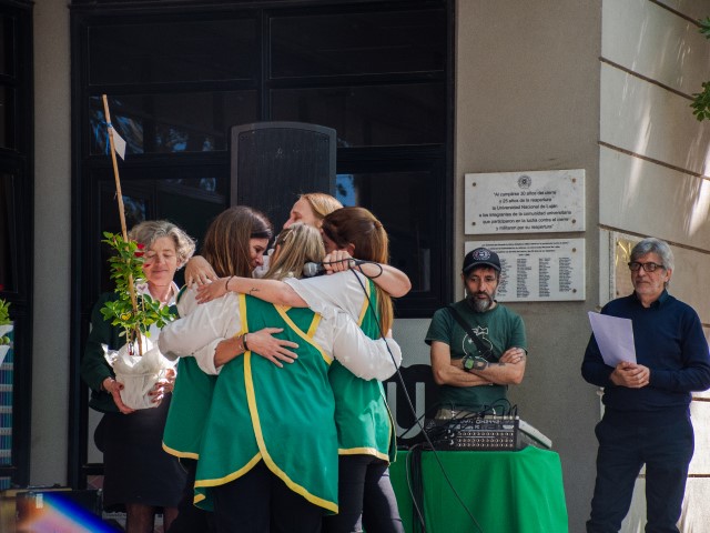 Iván, trabajador de la UNLu y egresado de la Escuela, agradeció en un breve mensaje “por enseñarnos desde tan temprano que jugar también es aprender” y dio lugar a una palabras del rector Walter Panessi, quien celebró la continuidad de este “proyecto educativo maravilloso”.
