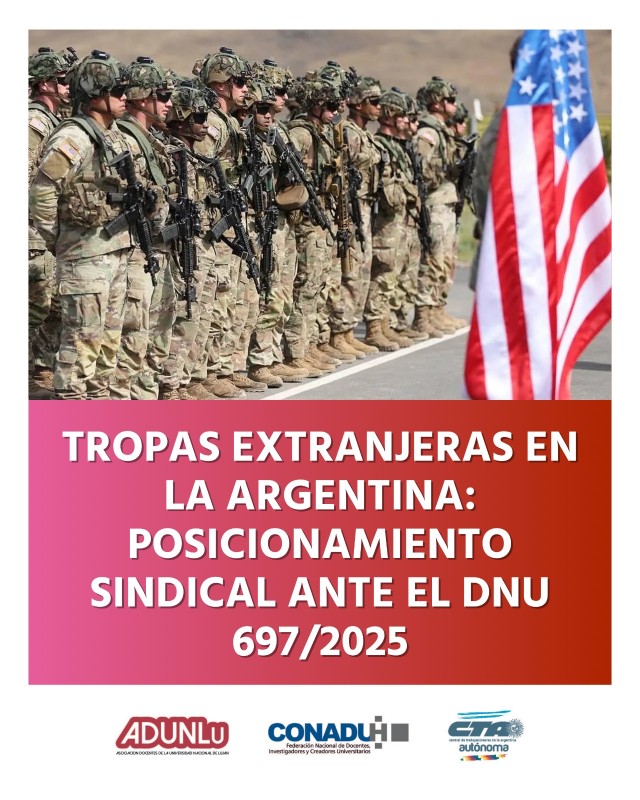 ADUNLu repudió la autorización para el ingreso de tropas extranjeras en la Argentina: “un hecho de extrema gravedad institucional, política y simbólica”