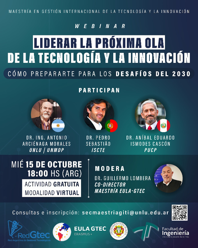 Se trata de una actividad gratuita organizada por la Maestría en Gestión Internacional de la Tecnología y la Innovación de la UNLu, que abre un espacio “donde podremos compartir conocimiento y experiencias para anticiparse al futuro y reflexionar sobre los desafíos que marcarán la próxima década en ciencia, tecnología e innovación”.