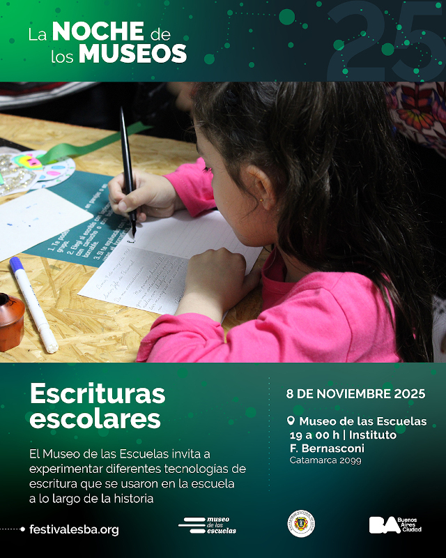 El sábado 8 de noviembre, a partir de las 19 horas en el Instituto Bernasconi (Catamarca 2099, Parque Patricios), el Museo de las Escuelas del Departamento de Educación de la UNLu participará como cada año en La Noche de los Museos de la Ciudad de Buenos Aires.
