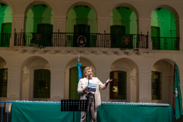 Desde el estrado, Leguizamón se dirigió a los presentes en representación de la Universidad: "Es muy emocionante la colación en esta plaza, símbolo de encuentro, historia y comunidad", dijo, y afirmó que "hoy más que nunca necesitamos profesionales comprometidos con la sociedad".