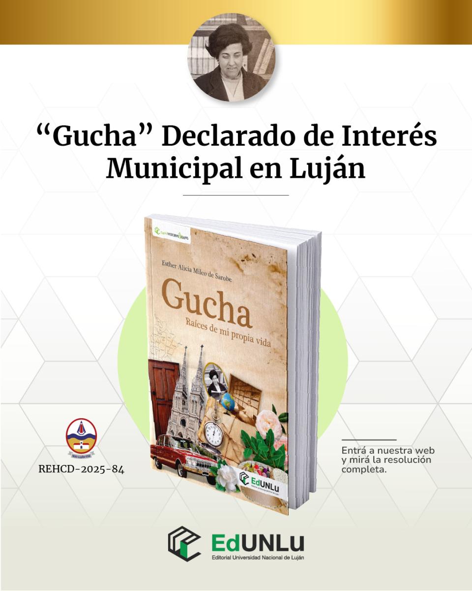 El Concejo Deliberante de Luján declaró de Interés Municipal, Cultural, Social y Educativo el libro “Gucha: Raíces de mi propia vida”, de Esther Alicia Mileo de Sarobe, editado por la Editorial de la Universidad Nacional de Luján (EdUNLu).
