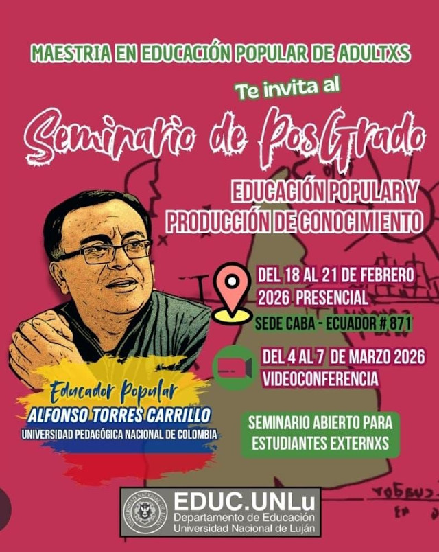 Del 18 al 21 de febrero en la sede CABA de la UNLu, y del 4 al 7 de marzo mediante la plataforma Zoom, se dictará el seminario de posgrado “Educación Popular y producción de conocimiento”, en el marco de la Maestría en Educación Popular de Adultos.