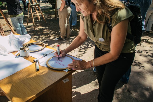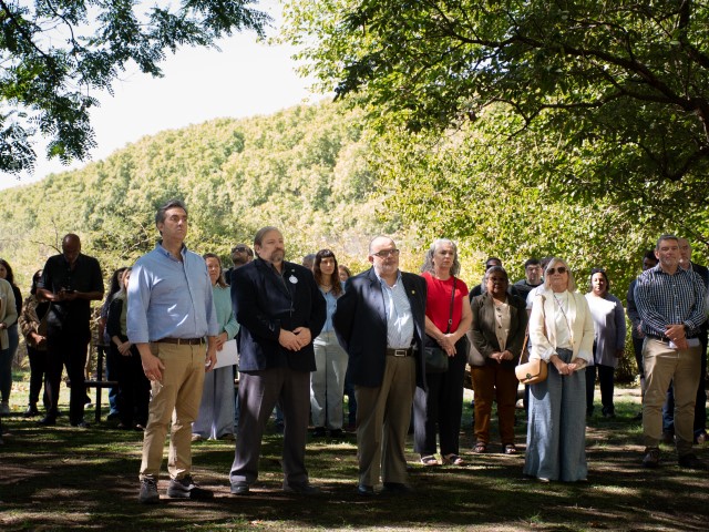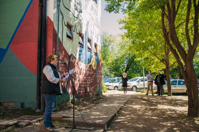El encuentro, que se inició en el Bosque de la Memoria de la Sede Central, tuvo continuidad con la presentación de la restauración del mural ubicado en el exterior del Departamento de Ciencias Sociales y la apertura del histórico chalet situado en el ingreso a la UNLu, donde funcionará el Museo de la Memoria de la institución.