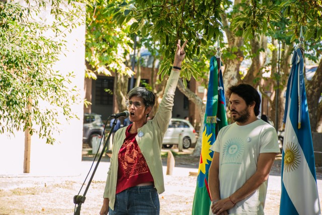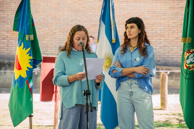 En representación de la Comisión Institucional para la Preservación de la Memoria de la UNLu, la Docente Laura Gabucci y la Nodocente María Eugenia Giorgio señalaron la continuidad histórica entre la dictadura y el actual gobierno, al que no le interesa la educación pública e incumple con la Ley de Financiamiento de las Universidades.