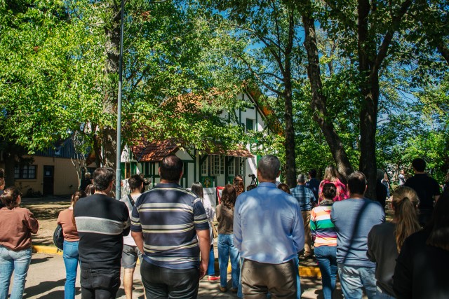 Finalmente, las y los participantes se acercaron hasta el chalet ubicado en el acceso a la Sede Central, cuyo interior pudieron recorrer. “La estructura está lista, pronto su sala se llenará de historia”, anunció la responsable de Ceremonial, Patricia Altuna, y se congratuló “porque la memoria vuelve a ser, simbólicamente, puerta de entrada a nuestra universidad”.