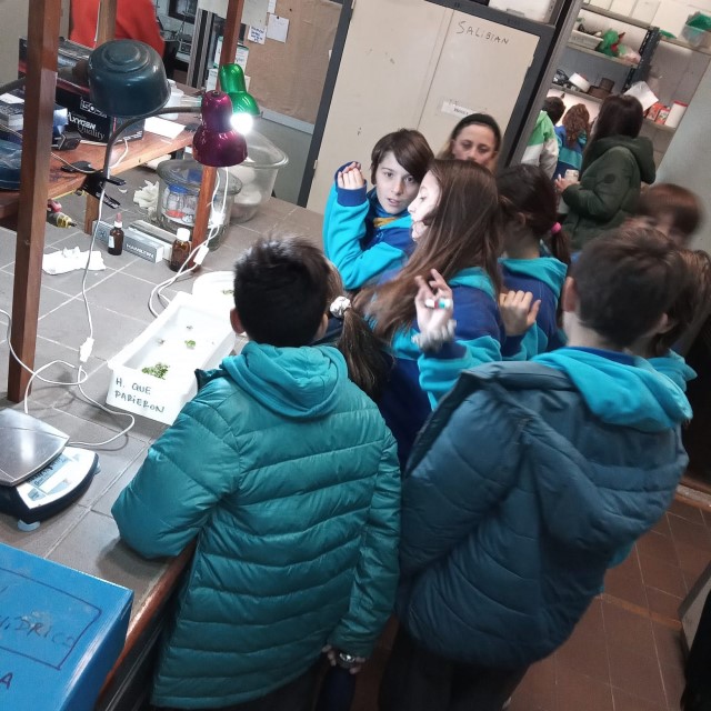 Luego, visitaron el laboratorio del Programa de Ecofisiología Aplicada (PRODEA) en donde el equipo de estudio de Adonis Giorgi, mediante la docente Natalia Ossana, desarrolló una actividad de observación en microscopio.