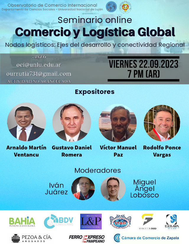 El Observatorio de Comercio Internacional (OCI) de la UNLu invita a participar del décimo encuentro del Seminario en línea de Comercio y Logística Global, que se llevará a cabo el viernes 22 de septiembre a las 19 horas.