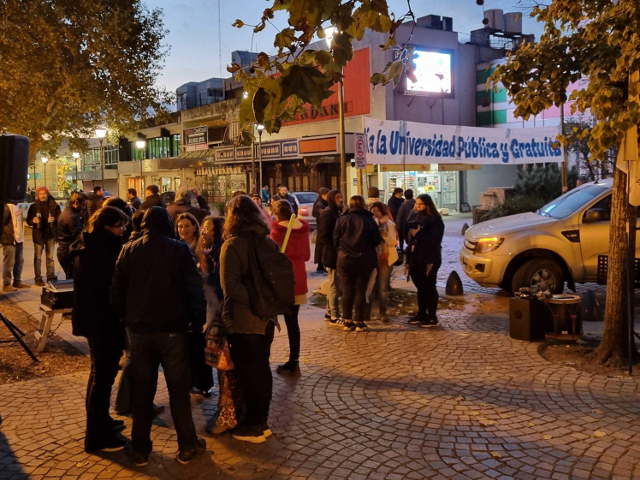 En la víspera del Paro, el miércoles 22, los docentes y trabajadores de la Universidad Nacional de Luján cerraron una extensa jornada de protesta con una convocatoria en Plaza Colón, en una manifestación frente al Municipio que incluyó un momento artístico, y en donde se recibió la solidaridad de representantes de otros sindicatos y también del intendente Leonardo Boto, funcionarios y concejales que se acercaron hasta el lugar del reclamo.